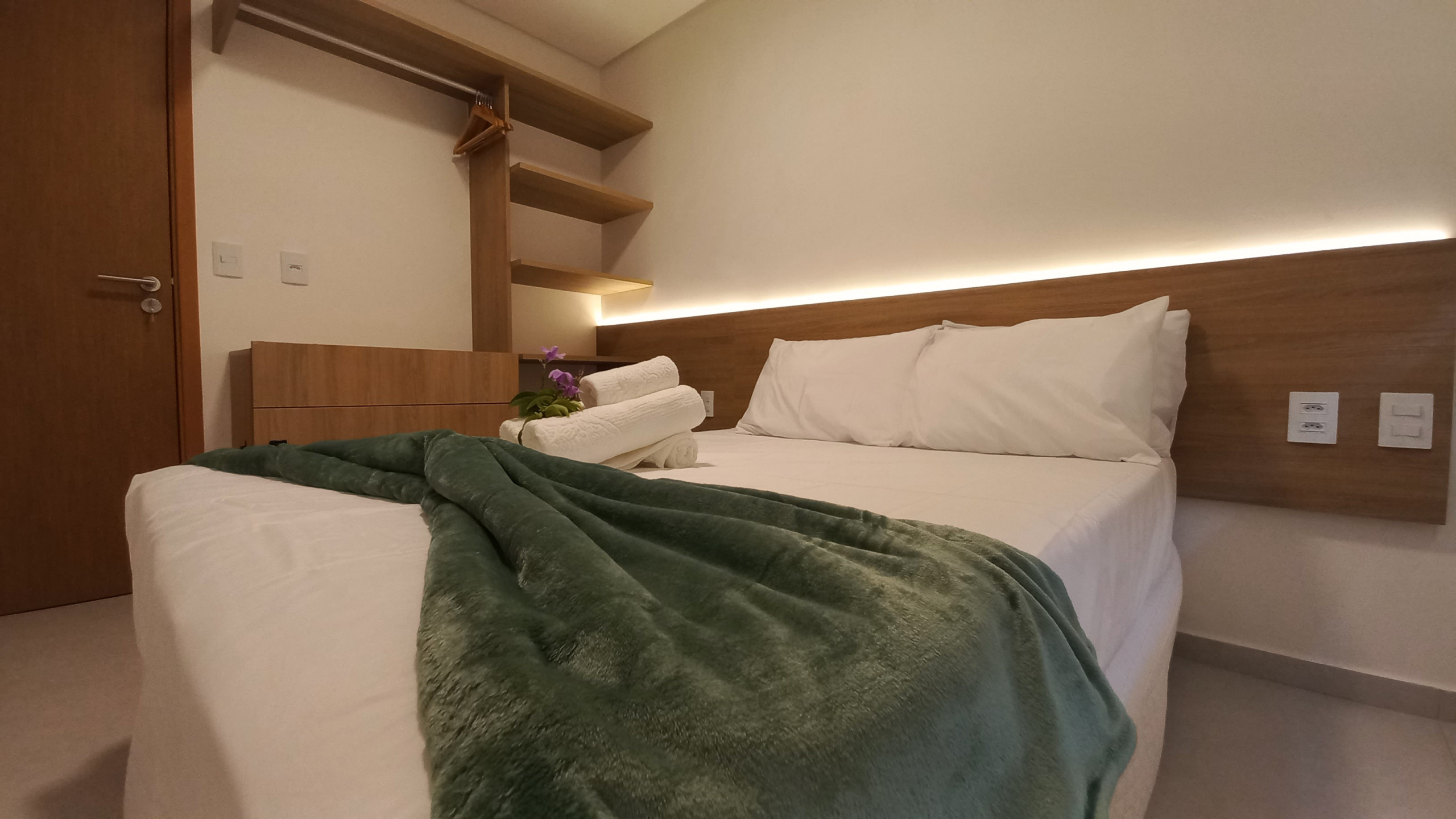 Quarto 1: Suíte com 1 cama de casal + 1 Solteiro