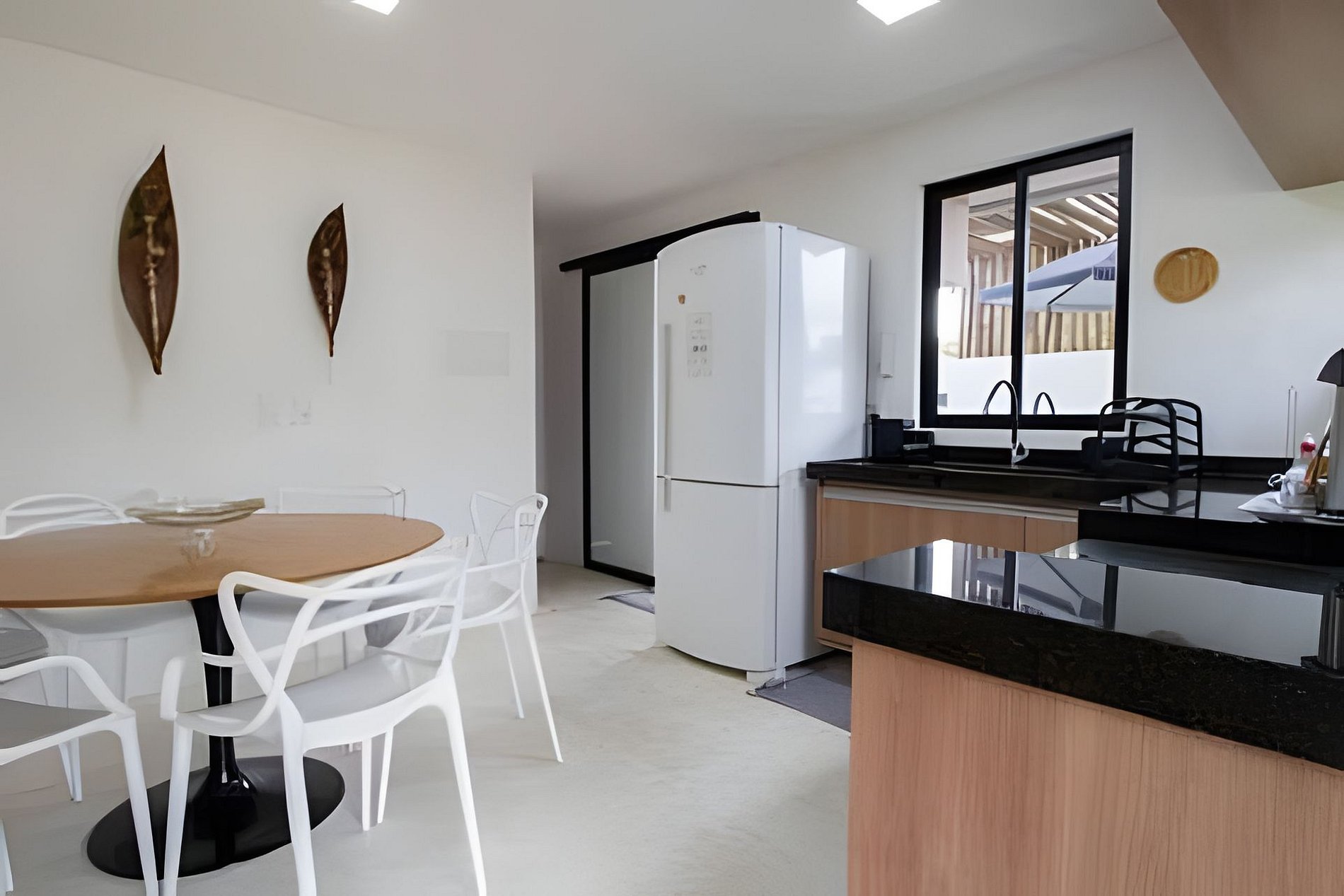 It comfortably accommodates up to 6 guests in its 3 suites, all equipped with a double bed. The house has a toilet, living room integrated with the kitchen, dining room and a complete gourmet area. In addition, you can enjoy a swimming pool and barbecue for moments of leisure.