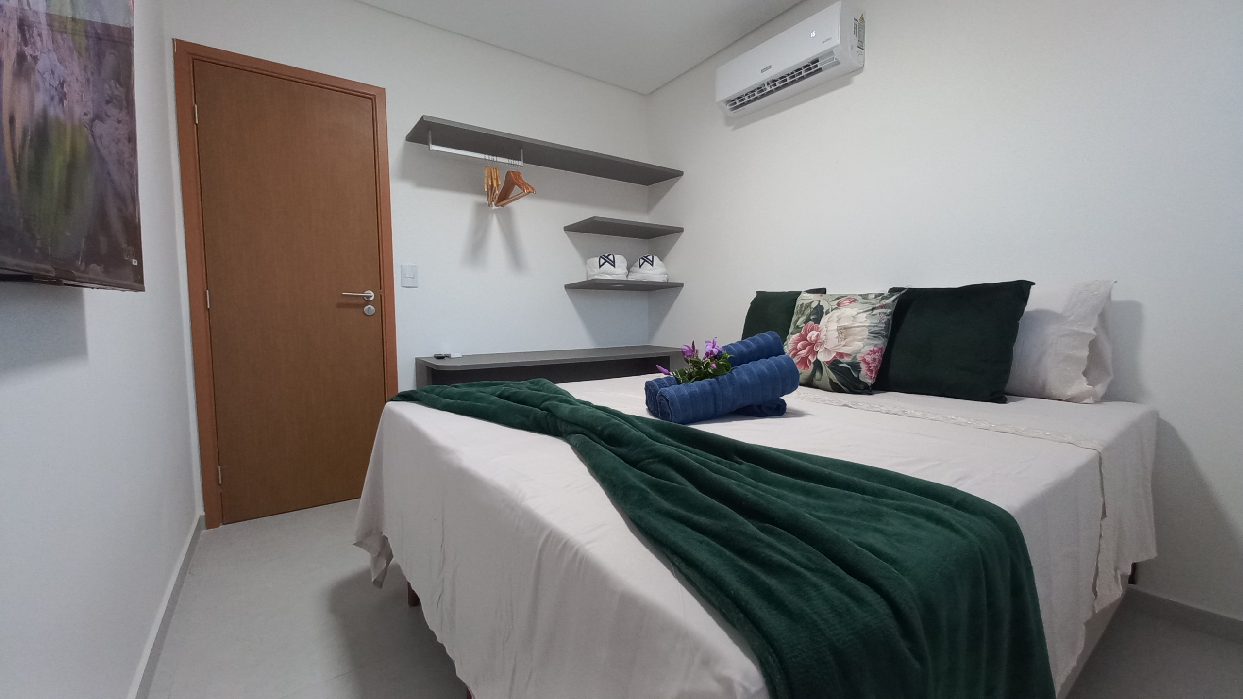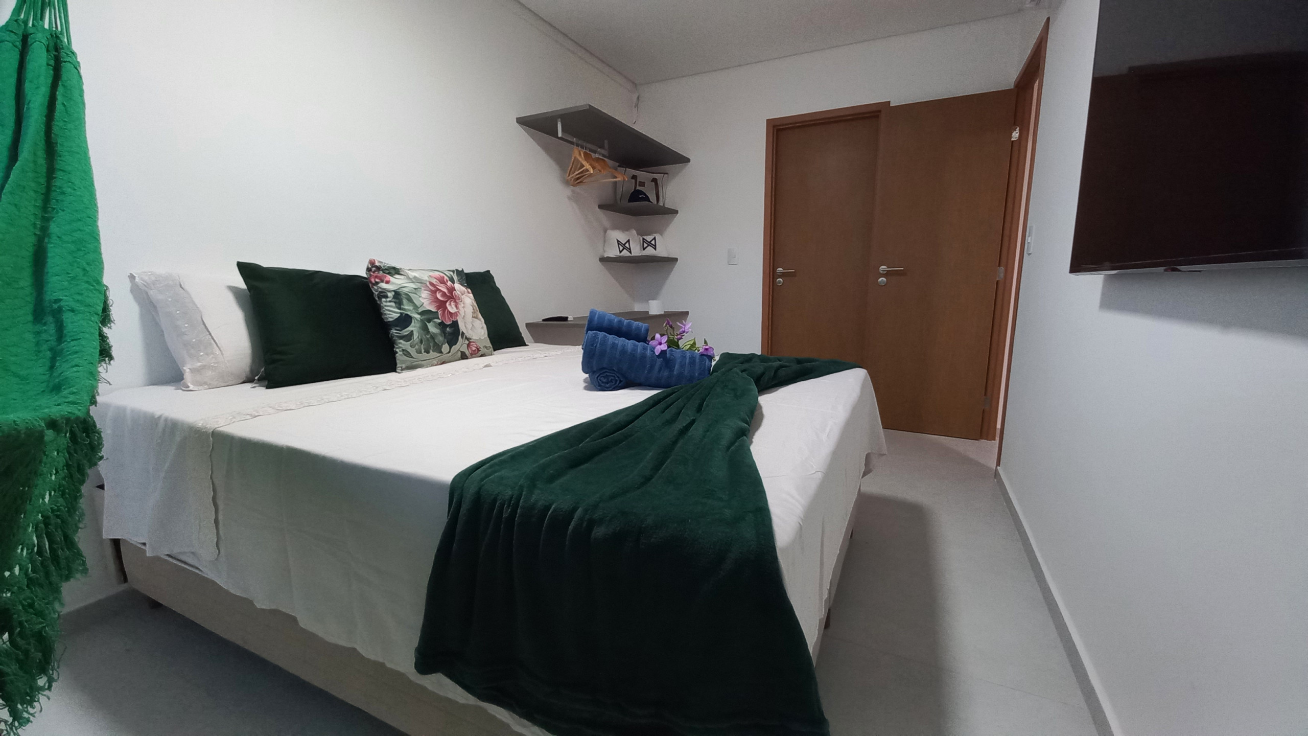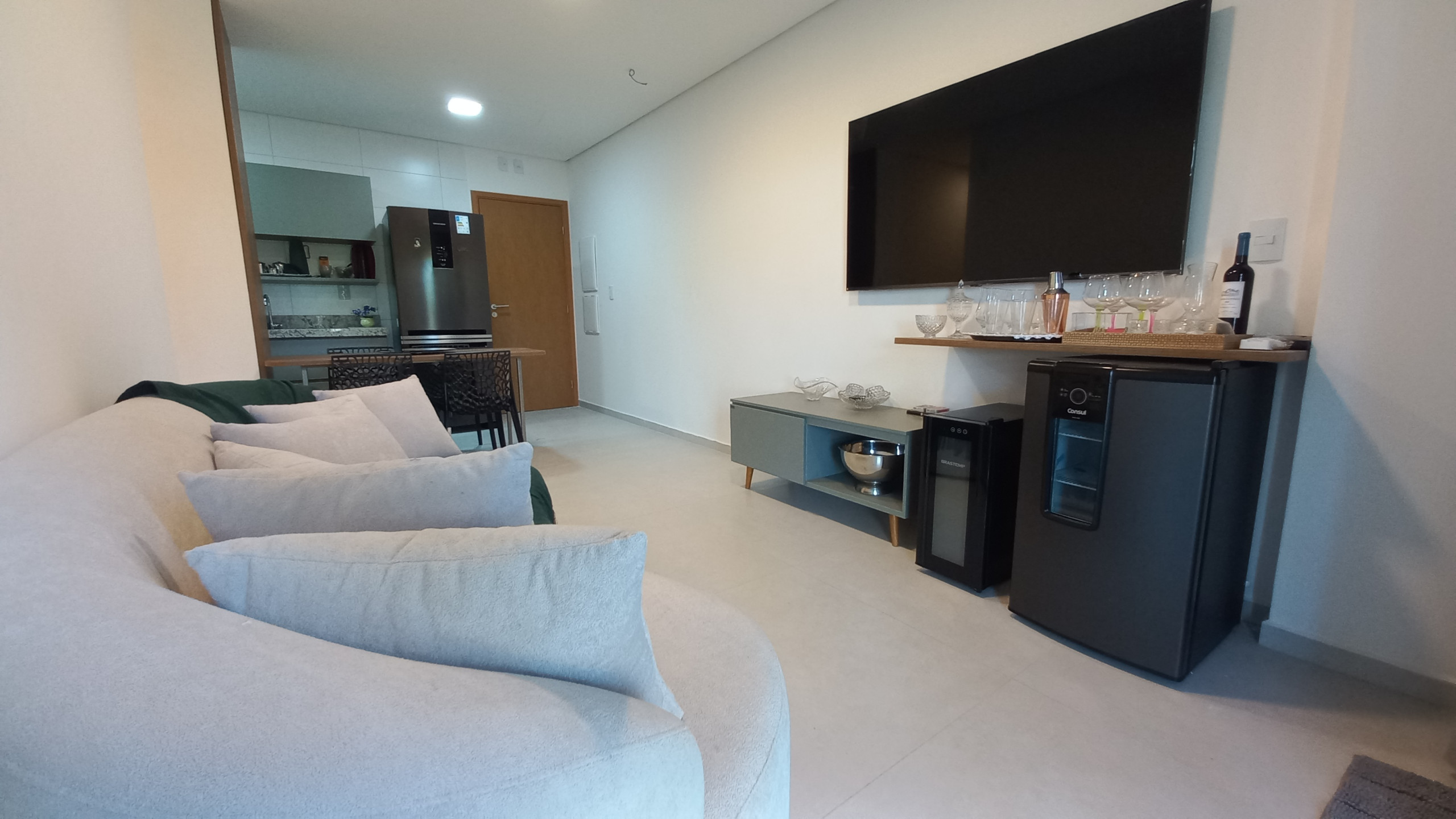 This spacious apartment comfortably accommodates 5 people, consisting of 1 suite with a double bed, 1 bedroom with a double bed. The integration between the living room and dining room creates a welcoming environment, complemented by a complete kitchen with all necessary utensils.