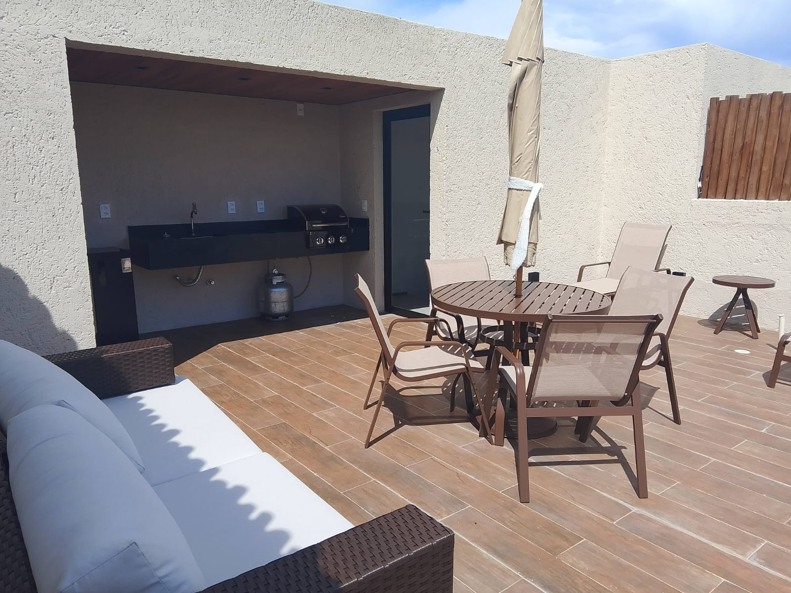 La unidad es dúplex y cuenta con dos habitaciones, ambas equipadas con cama de matrimonio y aire acondicionado, además de una sala acogedora, también climatizada, que dispone de sofá-cama para 02 personas, en la azotea cuenta con un área de convivencia con tumbonas y sillas.