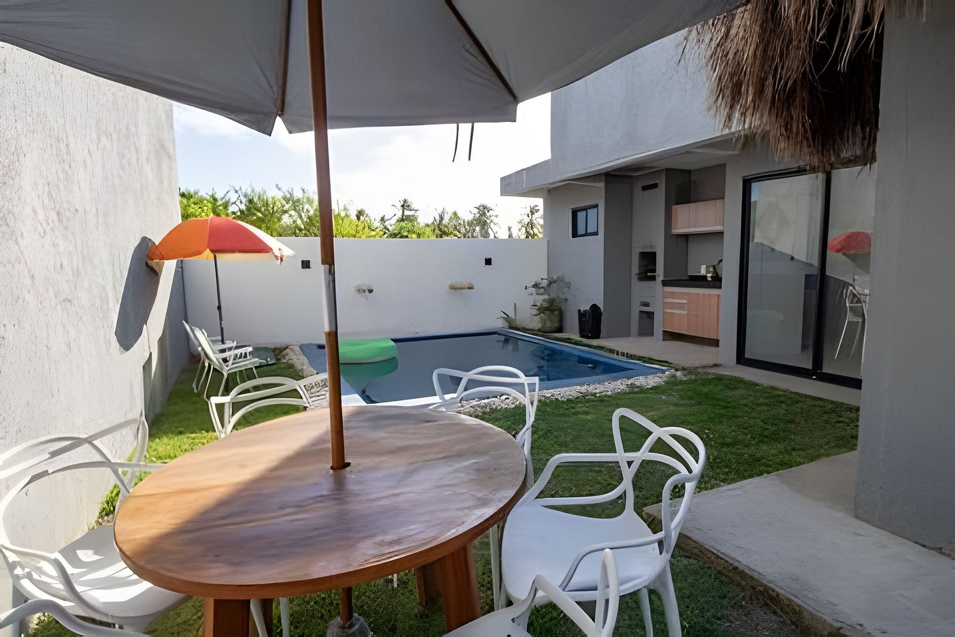 Puede alojar cómodamente hasta 6 huéspedes en sus 3 suites. La casa tiene un baño, sala de estar integrada con la cocina, comedor y un área gourmet completa.