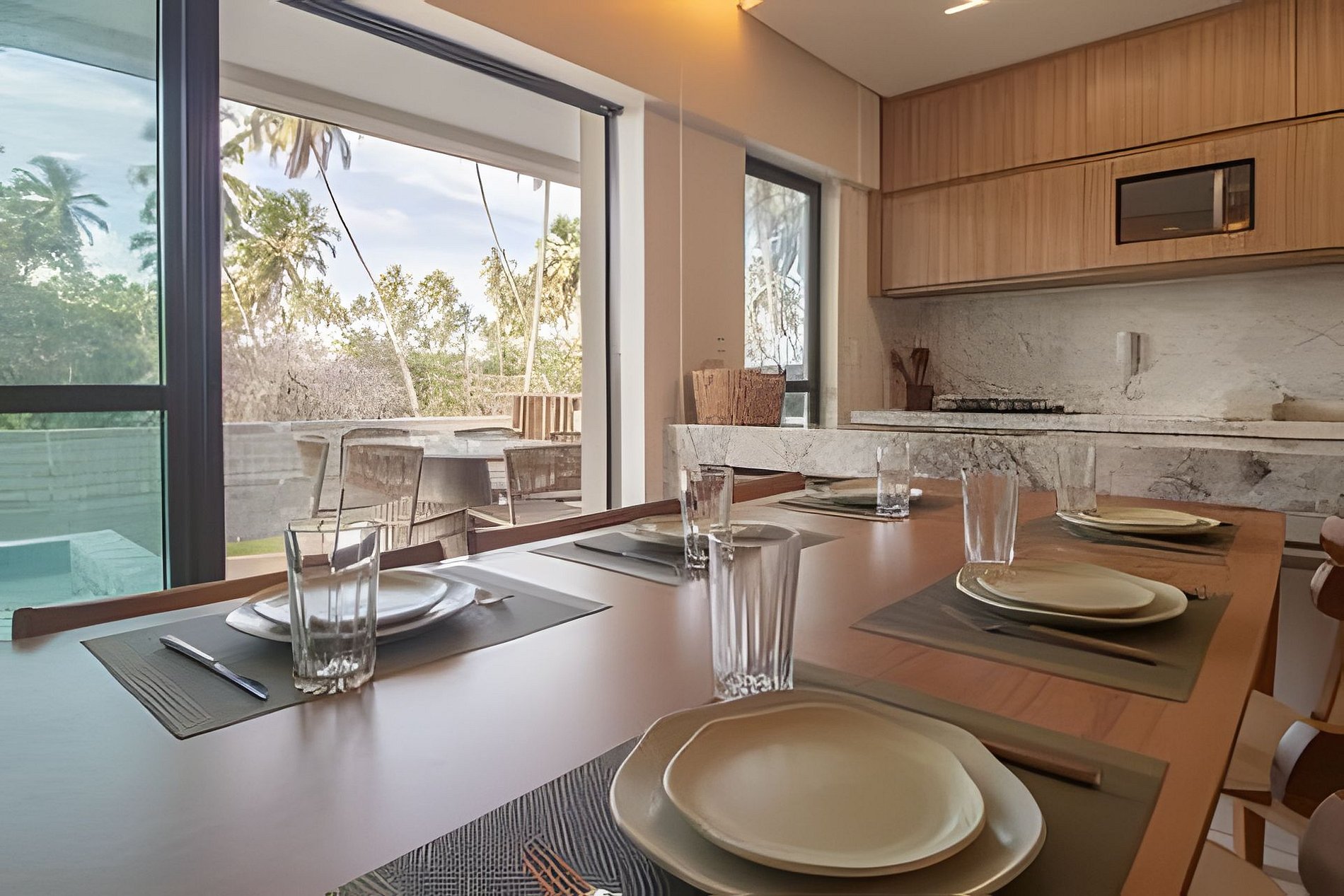Desfrute de momentos relaxantes na ampla varanda com a piscina privativa, churrasqueira, espaço equipado com cadeiras e uma mesa, enquanto contempla a vista deslumbrante do complexo do Ipioca Beach e sua praia.