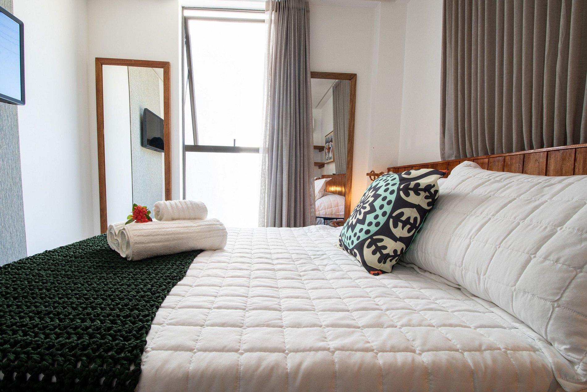 Conforto: Desfrute de roupas de cama e banho de alta qualidade, um kit de amenidades, Tv e Wi-Fi gratuito, garantindo uma estadia agradável e sem preocupações.