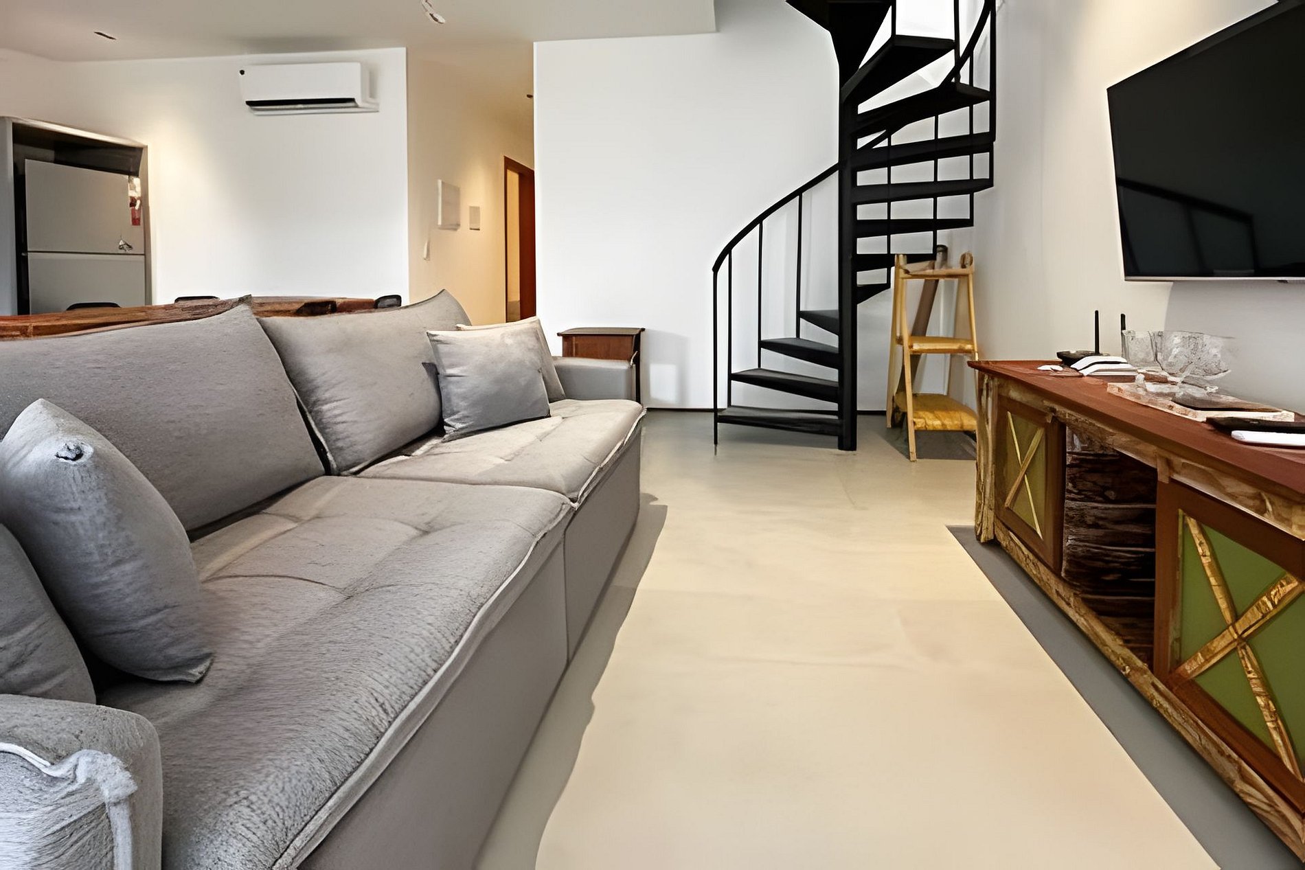 A cozinha completa, equipada com utensílios essenciais, permite a preparação de refeições com facilidade. O ambiente integra-se de forma harmoniosa aos restantes espaços, tornando a experiência ainda mais agradável.